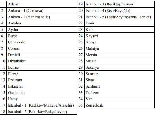 YÖKDİL sınav merkezleri şu şekildedir;