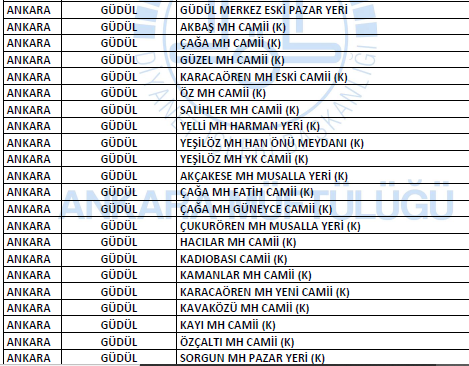 Ankara Güdül 29 Mayıs Cuma Namazı Kılınacak Camiler