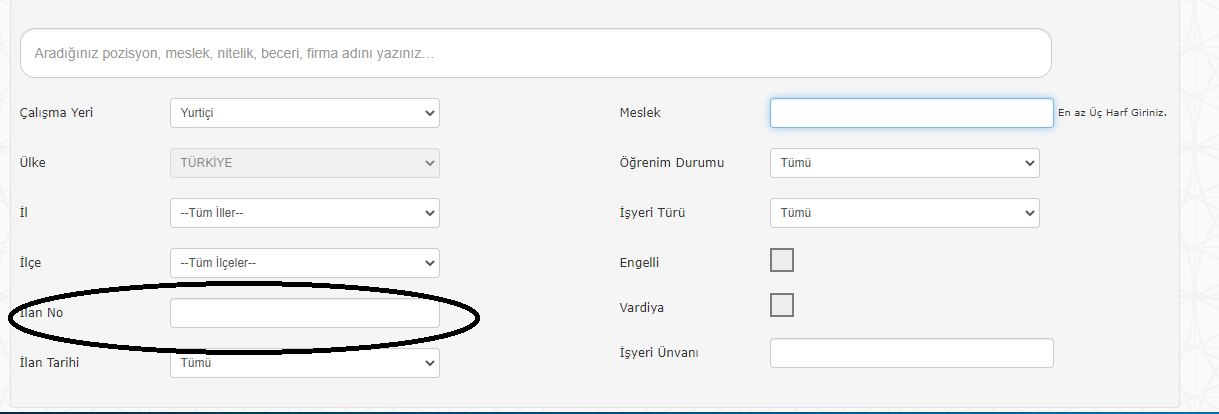• Eğer ilanda İLAN NO verilmişse;