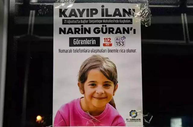 8 yaşındaki Narin, Diyarbakır'ın Bağlar ilçesindeki Kırsal Tavşantepe Mahallesi'nde 21 Ağustos'ta 15.00 sıralarında Kur'an kursuna gitmek için evden çıktıktan sonra kayboldu. AA'nın aktardığına göre; ailesinin yetkililere bildirmesi üzerine bölgede 112 Acil Sağlık, Jandarma Arama Kurtarma (JAK), AFAD ve Dicle Üniversitesi Arama Kurtarma (DÜAK) ekiplerince başlatılan arama çalışması sürüyor.