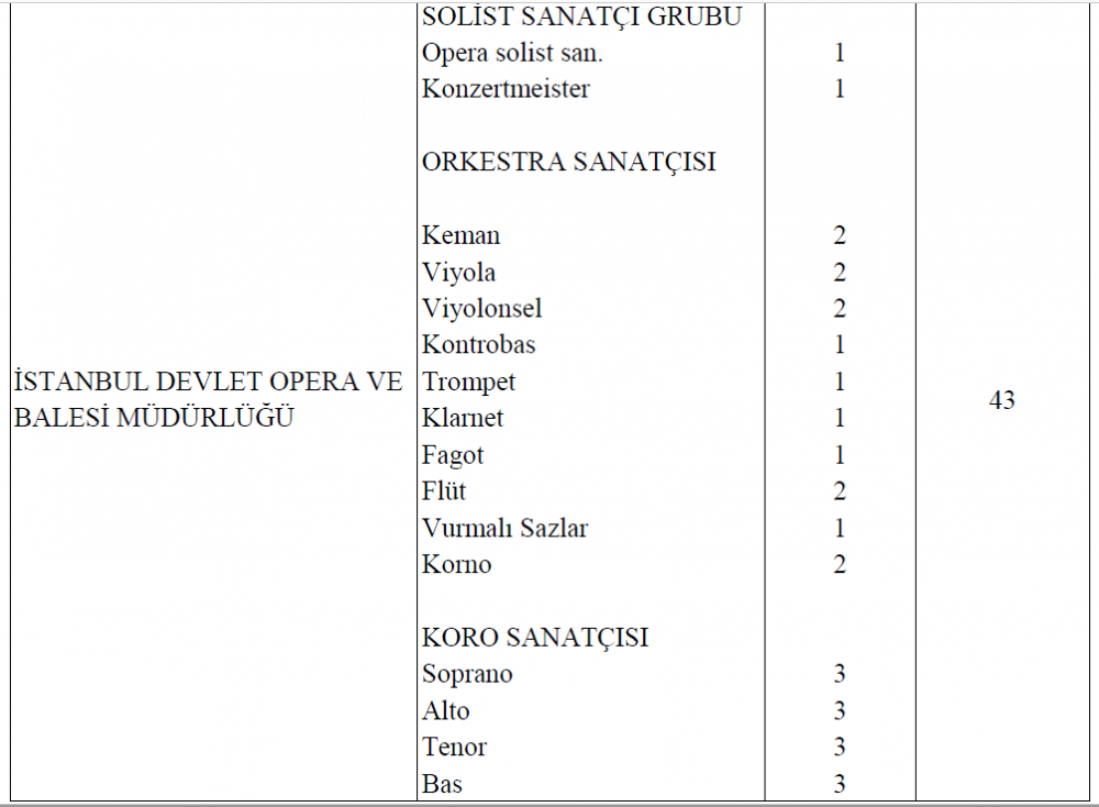 Cumhurbaşkanlığı Senfoni Orkestrası ve Devlet Opera ve Balesi'ne çeşitli çalgılar için eleman ve ses sanatçıları aranıyor.