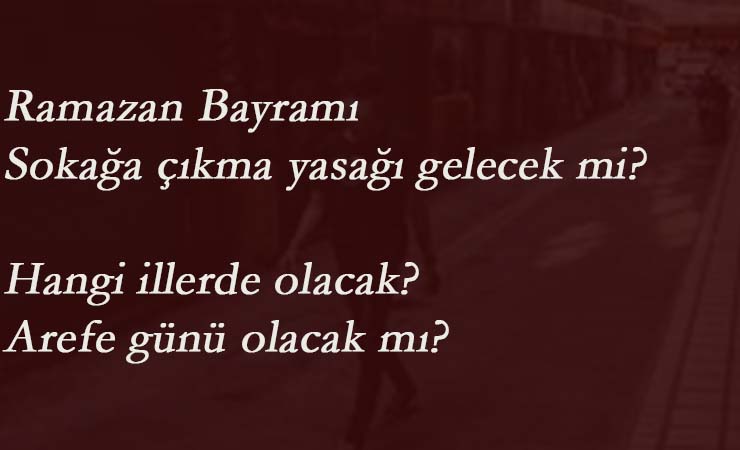 Verilecek sokağa çıkma yasağının arefeyi de kapsayacak biçimde 23-24-25-26 Mayıs 2020 tarihlerini kapsayacağı düşünülüyor.