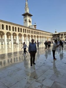 Kilis Öncüpınar Sınır Kapısında geçiş yaptığımızda, yani Suriye'ye giriş yaptığımızda saat 06:30 idi. Suriye Sınırından sonra Şam'a ulaşmamız 5 saat sürdü. Elhamdülillah saat 11:30'da Şam'da ve yarım saat içinde de Emevi  (Beyaz) Camii'ndeydik. Elhamdülillah, saat 12:00 sularında Şam'daki meşhur Kapalı Çarşı'dan yürüyüp Emevi Camii'ne ulaştık. Maşallah. Camii avlusuna girdiğimizde Kur’an tilaveti vardı. Abdestimizi aldık ve Cuma Namazı için saf tuttuk.