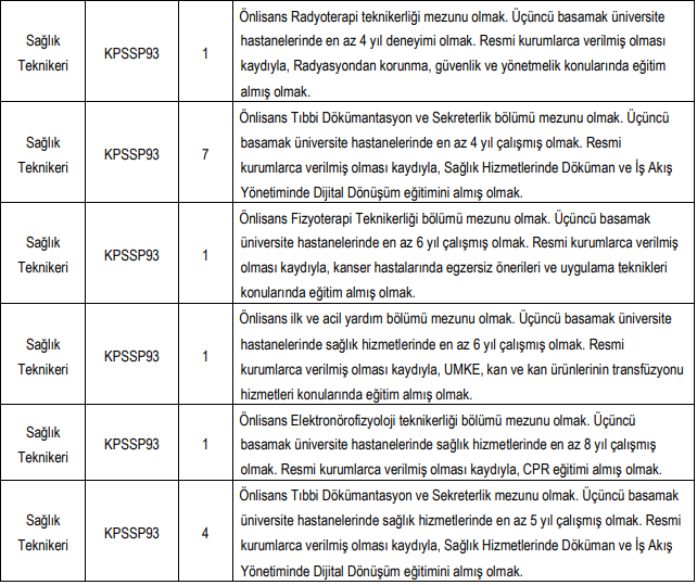 - Lisans mezunları için KPSSP3,Ön Lisans mezunları için KPSSP93, Ortaöğretim mezunları için KPSSP94 (B) grubu süresi geçmemiş sınav sonuç belgesine sahip olmak.
