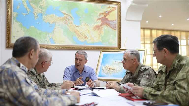 Milli Savunma Bakanı Hulusi Akar ve Türk Silahlı Kuvvetlerinin (TSK) komuta kademesi, KKTC'de komandoların eğitimini denetledi, kapalı Maraş bölgesinde havadan…
