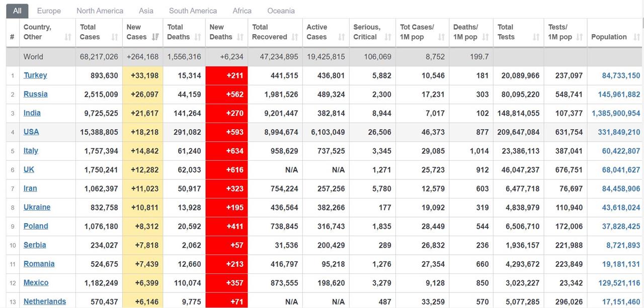 Dünya genelinde ve ülkemizde salgının etkileri devam ederken, ülkemizde kısıtlamalara rağmen vaka sayılarının artışı endişelendiriyor. 8 Aralık Korona tablosu açıklandı ve Türkiye'de 33 bin 198 yeni vaka tespit edildi. Bu Türkiye'nin sürecin başından beri gördüğü en yüksek vaka sayısı olmak ile birlikte, Türkiye'yi dünya genelinde vaka sayılarında ilk kez zirveye oturttu.