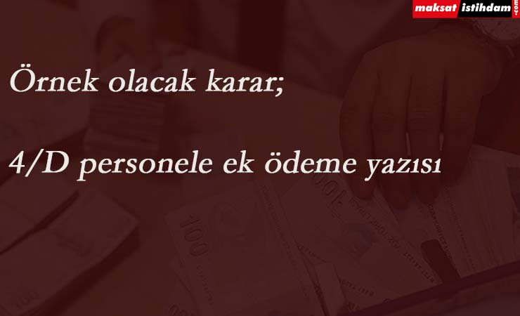 Aydın Valiliği tarafından merkez ve taşra sağlık kurumlarına gönderilen yazıya göre, il genelinde sağlık personeline ödeme en üst limitten yapılacakken, 4/D sürekli işçi olarak çalışan personele de 200 lira ek ödeme yapılması kararlaştırıldı.