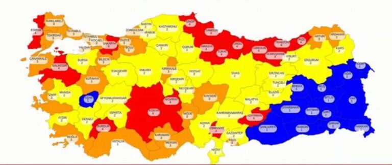 Sağlık Bakanlığı tarafından kısıtlamaların kalkmaya başladığı normalleşmenin ilk Korona haritası yayınladı. İllere göre 100 bin kişide vaka sayısı için yapılan tabloda İstanbul'a soğuk duş geldi. Normal şartlarda iller 100 bin kişide 85 vaka sonrası kırmızı gruba giriyor. İstanbul'da bu hafta 100 bin kişide 111 vaka vardı ve tablo kırmızıya döndü. Bir çok yeni ilimiz de turuncu ve kırmızı tabloya girdi. Turuncu yerlerde Pazar günleri sokağa çıkma yasağı, kırmızı yerlerde hem sokağa çıkma yasağı, hem de mekanların kapanması söz olacak.